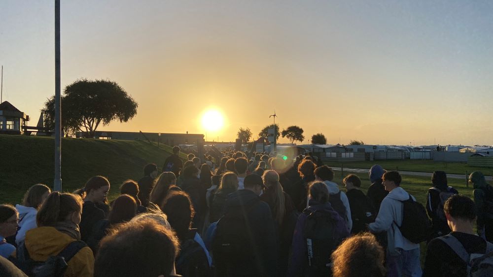 Das Inselsportfest 2025 sollte eigentlich nach Langeoog gehen. Aber weil es dort zu starke Windböen gab, ging es nach Schillig. Nach der einstündigen Busfahrt kamen die etwa 1200 Gymnasiasten gegen 8 Uhr morgens bei Ebbe am Strand an.